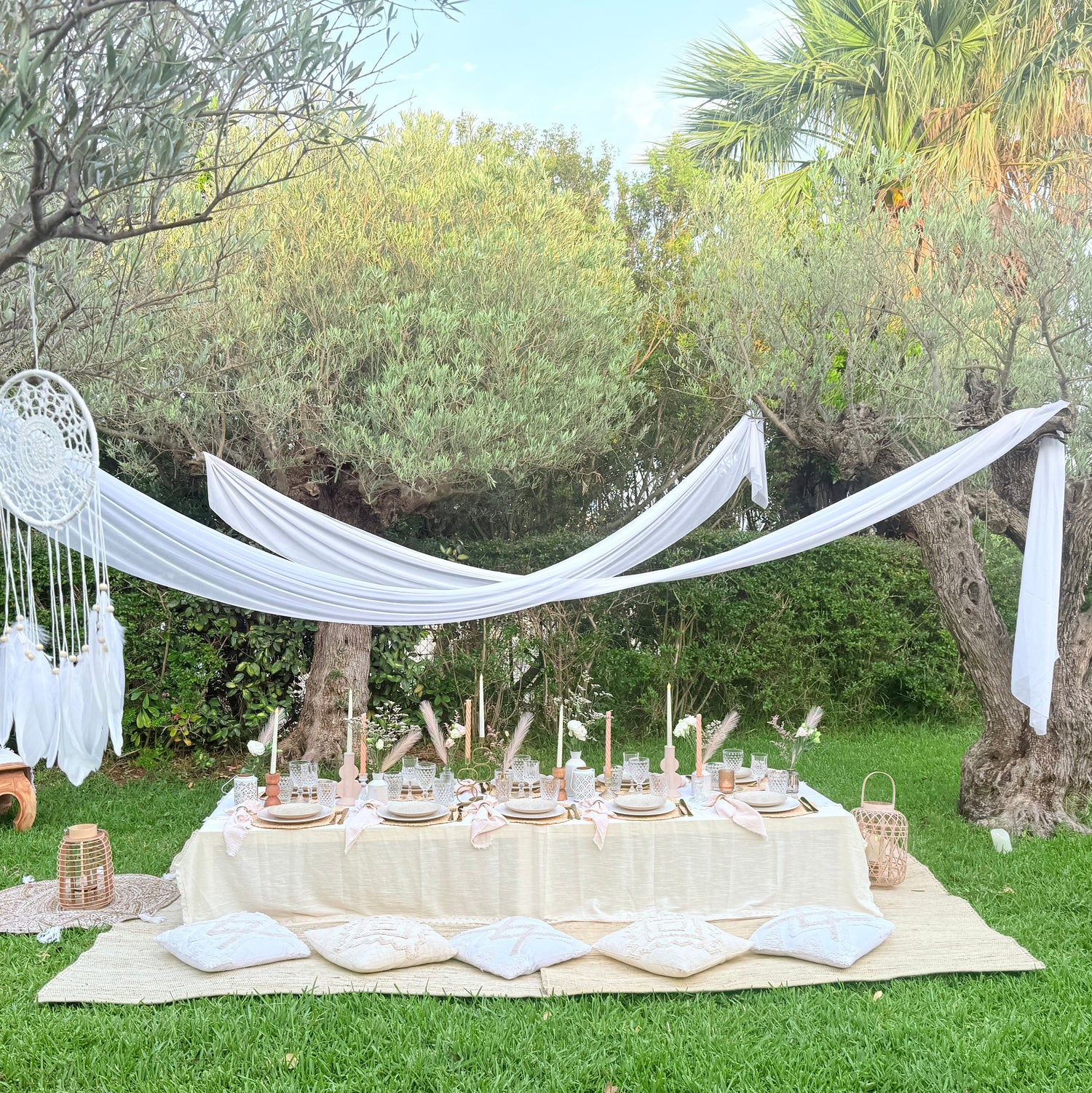 Chaque pique-nique est imaginé sur-mesure jusqu'à 50 personnes et plus, dans une atmosphère bohème chic.